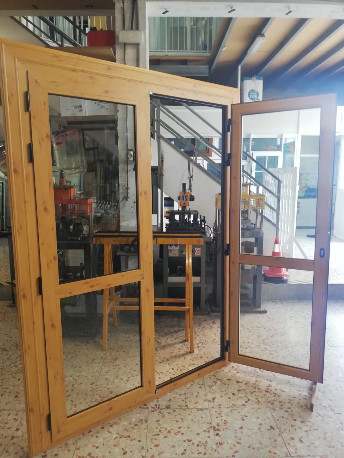 Puerta de 2 hojas de aluminio color madera pino nudo
